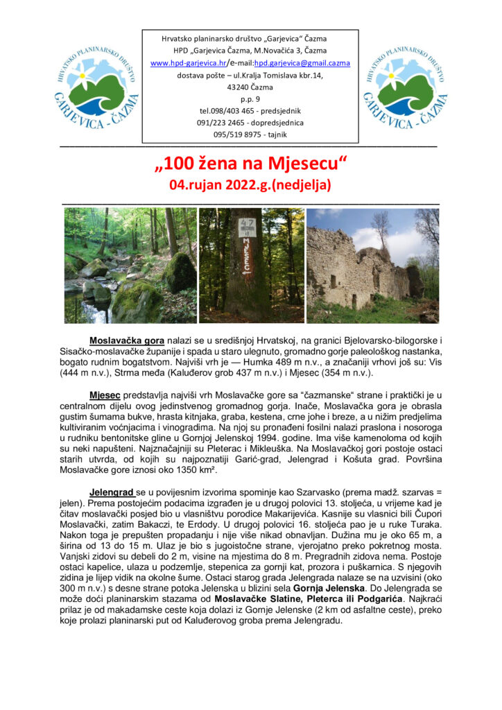 HPD Garjevica Čazma ponovno organizira planinarski pohod na sjeverozapadnim obroncima Moslavačke gore, pod nazivom “100 žena na Mjesecu”.