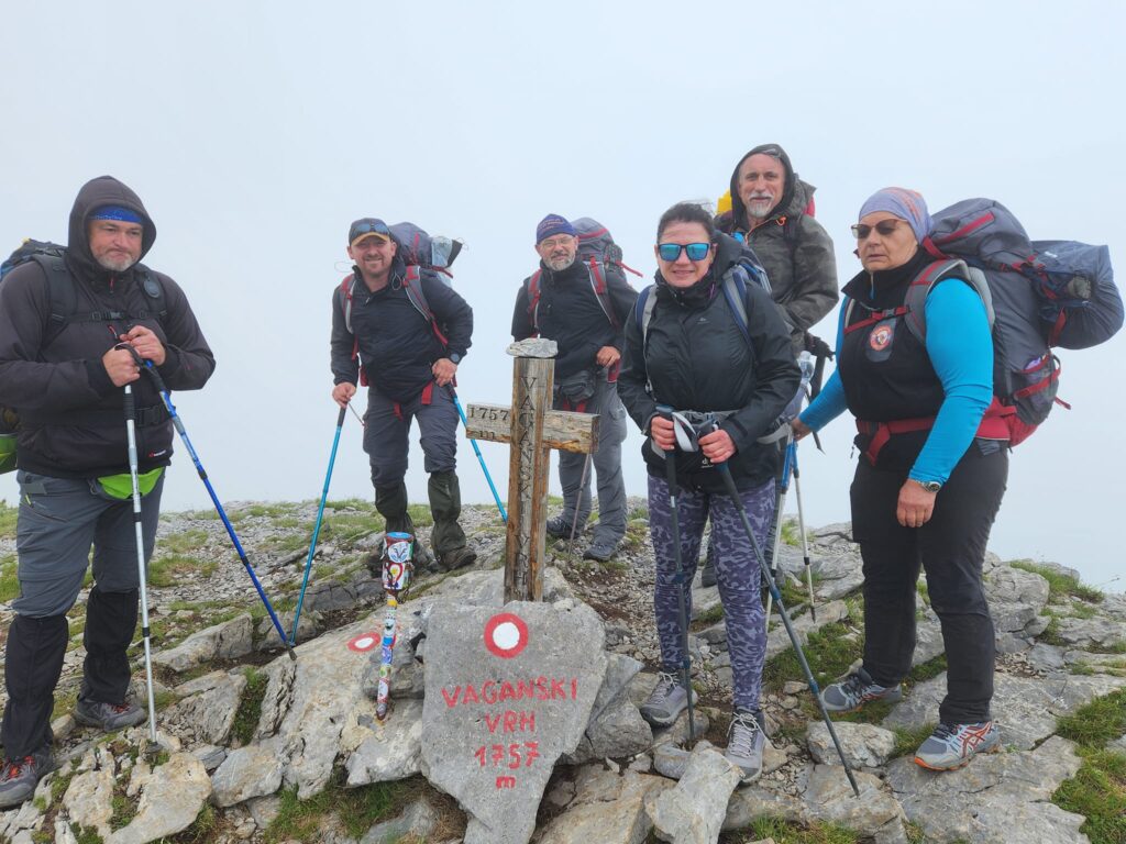 “” 30 05. u 04.00 h krenulo je 13 planinarki i planinara na velebitsku avanturu u trajanju od 4 dana. Bila su to 4 nevjerojatna dana na Velebitu koje je gotovo nemoguće opisati riječima. 4 dana – preko 70 km sa ruksacima koji su težili od 15kg pa do preko 20kg – unatoč lošoj prognozi možemo biti zadovoljni i reci da nas je vrijeme pomazilo i da je Velebit bio odličan domaćin. Jedna planinarka je nakon prvog dana morala odustati, te je uz pratnju drugog planinara otpraćena i sigurno stigla kući, kasnije još dvoje planinara napušta ekipu, tako da je 8 planinara završilo ovu avanturu, a njih 4 je ispenjalo i sve planirane vrhove na ovoj 70-kilometarskoj ruti.