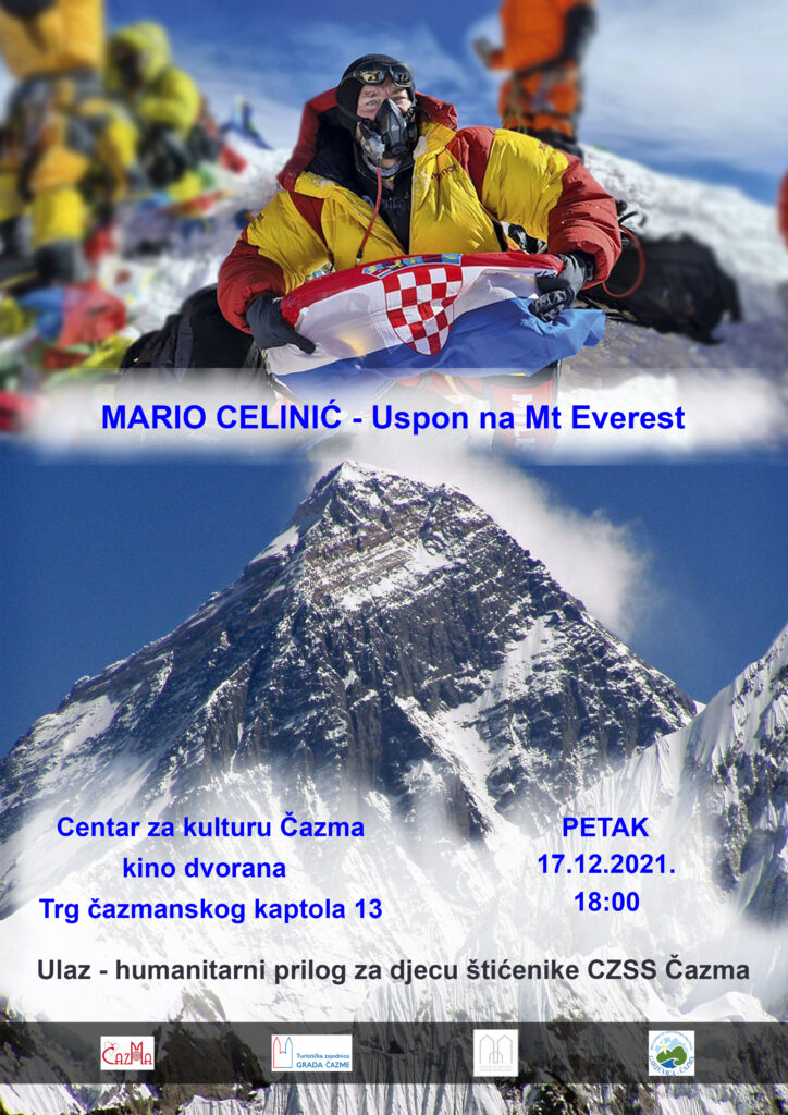 Dana 17.12.2021.g. u 18.00 sati, u kino dvoranu Centra za kulturu u Čazmi, Trg čazmanskog kaptola kbr.13, dolazi “glavom i bradom”, jedan od istinskih planinarskih heroja današnjice – nevjerojatni Mario Celinić.