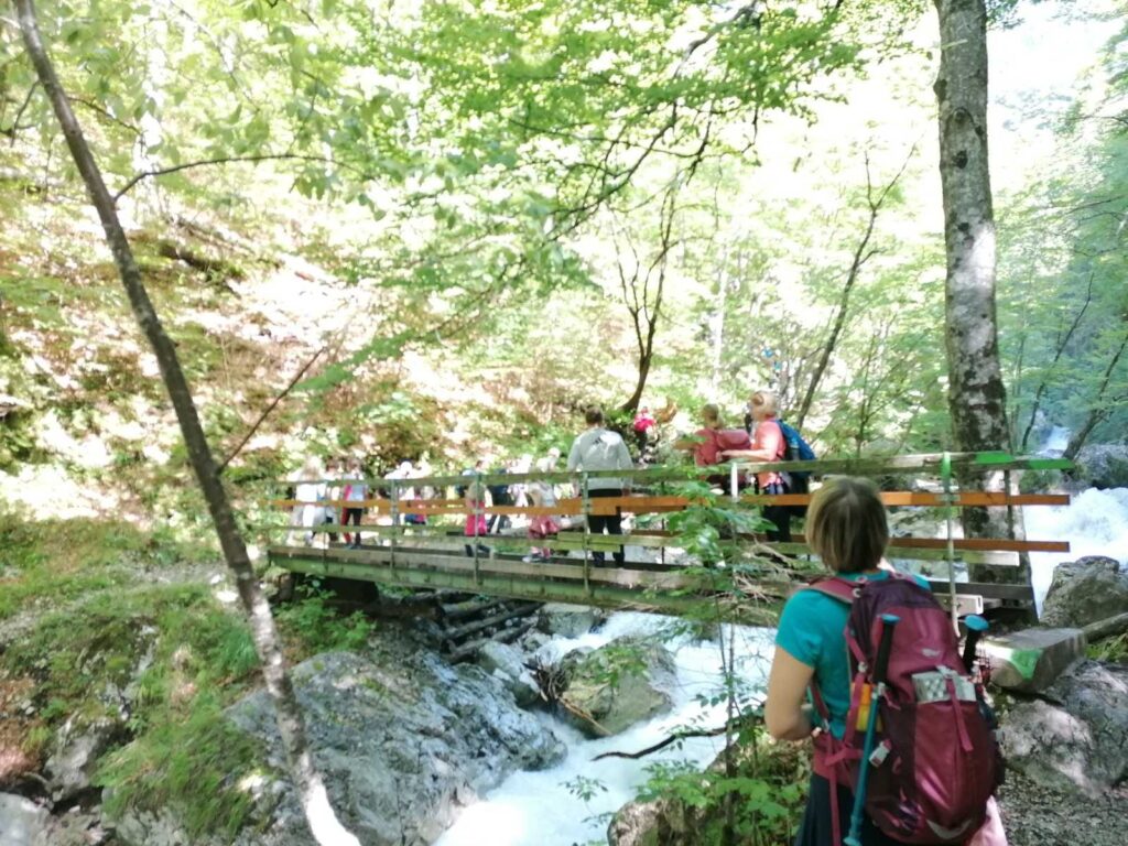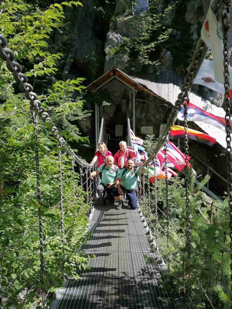 Najatraktivniji je viseći most sa puno zastavica, a tu je i blizu kraj staze. Po završetku staze otišli smo na ručak u višestoljetnu gostionicu Deutsher Peter, a i malo je zagrijalo, ali čekala nas je još Polna peč. Netko bi rekao noćna mora poslije ručka planinariti, ali dobro i to smo izdržali.