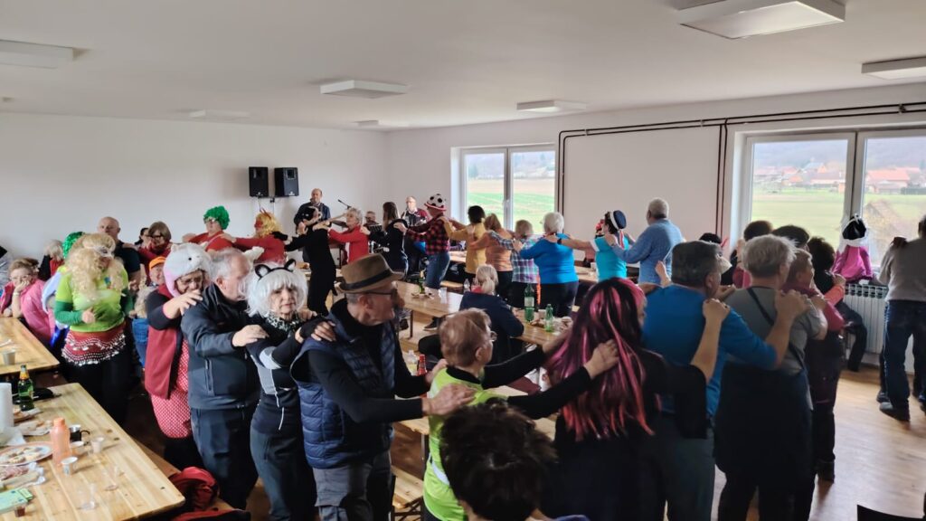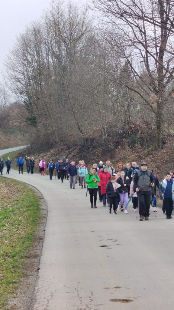 Oko 9 sati, uz zvuke muzike naših DJ-a amatera (za kontakte se javiti na mail), ispred doma u Mikloušu već je bila zagrijana atmosfera. Protiv hladnog zraka borili smo se plesom, degustacijom namaza i pićima dobrodošlice. Nakon jedne grupne fotografije, naši veseli planinari podijelili su se u dvije skupine te su jedni otišli u laganu hodnju asfaltom po okolici Miklouša, a ostali se odvažili na hodnju od oko 12 km do Svetog Vida, Visokog brda i Suhaje.