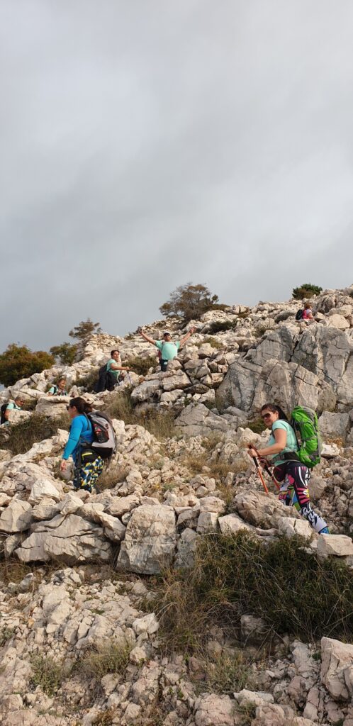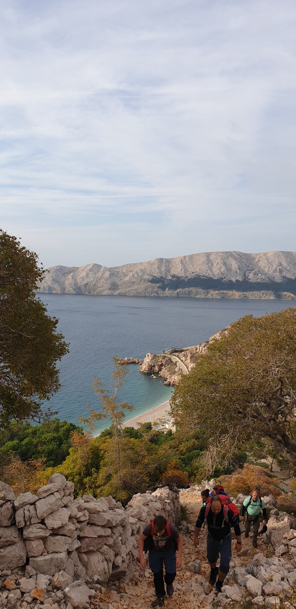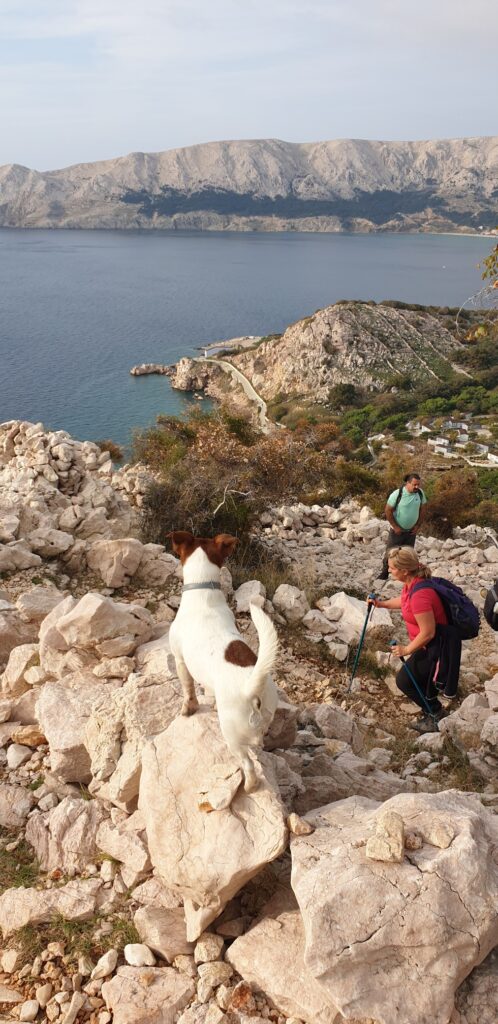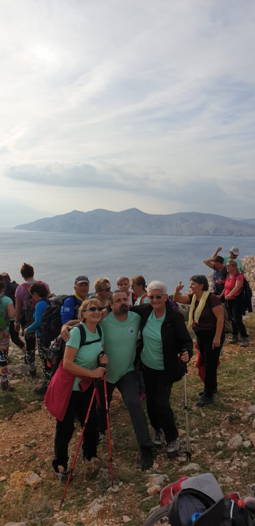 U 9h krenuli smo na pohod. Staza u početku vodi kraj sada već pustog kampa koji je svoja vrata zatvorio prije 20-tak dana. Vrlo brzo iz pitome borove šumice staza prelazi u kamenitu stazu koja vodi ka vidikovcu Rebica na 311m.n.v. Svakim novim korakom otvarali su se prekrasni vidici duž morskog plavetnila obližnje otoke i predivne uvale. Vela luka i Mala luku su prekrasne uvale iznad kojih se s jedne strane uzdiže vidikovac Rebica a sa druge strane na najistočnijem rtu otoka Krka ostaci i ruševine gradine Corinthia.