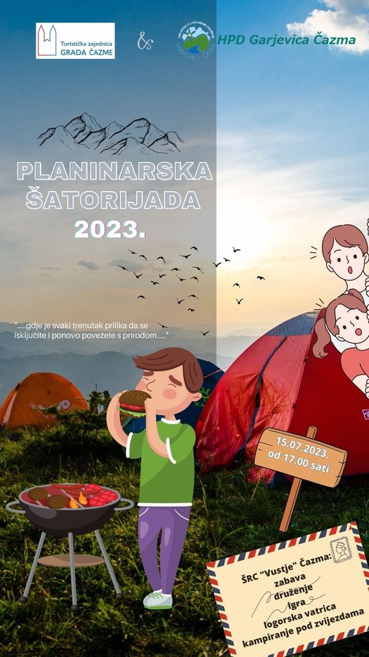 U subotu Šatorijada, a u nedjelju Kotlijada ! Nadamo se, nikada opuštenija, nikada veselija i nikada otkačenija – Šatorijada! Pustite brige, probleme, stres…Opustite se, družite se, volite se!U dobrom društvu! Pod zvjezdanim, čazmanskim nebom! Dođite, čekamo Vas u subotu na ŠRC Vustju!