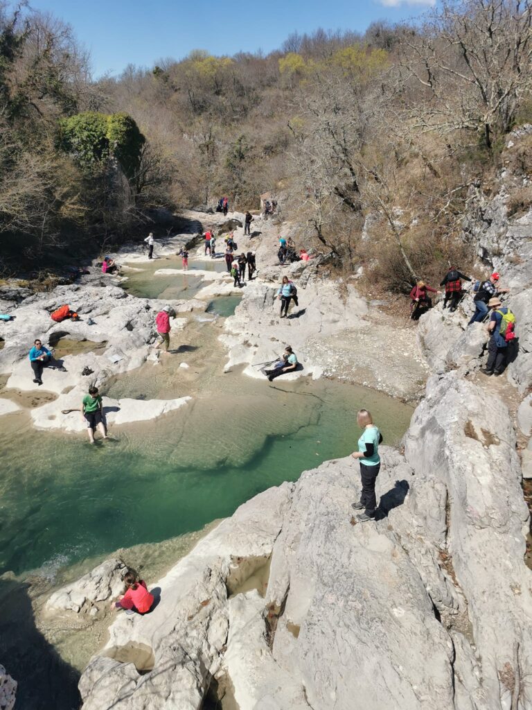 Konkretno – Buzet – 7 slapova Istre. Slapovi i prirodne ljepote oduševili su nas a posebno fotografe, slikalo se, blicalo se na sve strane. Fantastična kružna staza, ne mogu vam opisati koliko smo uživali uz Mirnu i slapove. Jer naša Mirna nikako nije bila mirna, kao da nam je šaputala neku svoju priču, priču koju priča svakom tko naiđe u njenu blizinu. Priču mira i savršene pozitivne energije. Sunce koje je počelo da se igra s nama, kreiralo je poglede u beskrajne vrhove stijena slapova i kanjona tako da u jednom trenutku nismo znali na koju stranu da gledamo i uživamo. Proslavili smo i moj rođendan, ljepšeg nisam mogla poželjeti. I kao šlag na torti naša Gloria (8-mo godišnja djevojčica iz prijašnje priče na Ozlju) pjevala je cijelim putem kući, sve riječi od pjesama je znala. Pokušat ću sa slikama da opišem svu tu ljepotu. Iskreno, ne mogu da procijenim jeli mi bio draži uspon ili povratak, ali definitivno sam sigurna da nam je Istra poklonila nešto što dugo nitko nije i da će nam ovaj dan biti urezan u sjećanje. Zato joj se uvijek i vraćamo. Ja konkretno sada već treći put i uvijek me očara svojom ljepotom. Istra ima još svojih dragulja, pa tko želi neka malo istraži. Ako do sada niste počeli planinariti i upoznavati planine i našu lijepu zemlju, nikada nije kasno, jer vas planine čekaju, i žude za vašim koracima.