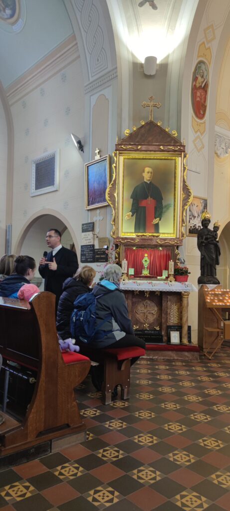 Naša prva postaja bila je u oblačno, nedjeljno jutro, mjesto Krašić. Centar tzv. Doline kardinala jer su mnogi značajni ljudi katoličke crkve rođeni upravo u ovom kraju. Dovoljno je spomenuti Blaženog Alojzija Stepinca i kardinala Franju Kuharića i sve će vam biti jasno. Naravno, naš odabir bila je velebna Župna crkva Presvetog Trojstva i župni dvor sa Spomen domom, te naravno, njihov domaćin, vlč.Ivan Vučak. Ovdje neću napisati ništa više osim da smo apsolutno svi, od naše najmlađe članice Dore, do najstarije ali izrazito vitalne Nade, blago rečeno ostali zatečeni jednim nevjerojatno duhovitim i nadahnutim, a istovremeno edukativnim i duhovnim izlaganjem velečasnog Vučak Ivana. Čovjek nas je toliko oduševio da smo se po odlasku iz Krašića još dosta vremena sa osmijehom na licu prisjećali njegove propovijedi. Definitivno, kao “Dobri Pastir” ima ono nešto što bi “Sluga Božji” trebao imati u kontaktu sa “običnim ljudima”. Veliko mu hvala na gostoprimstvu jer nam je dan započeo bolje nego smo mogli zamisliti.