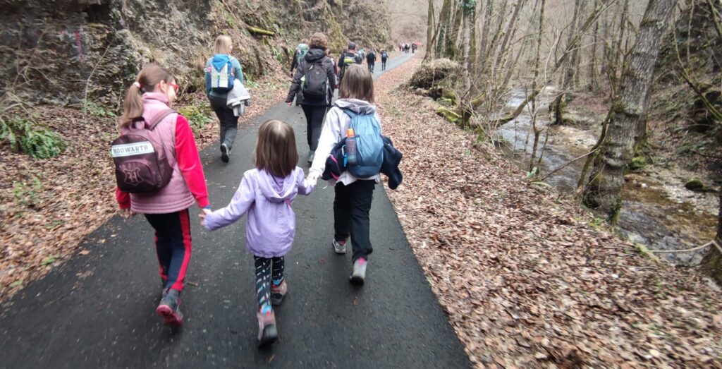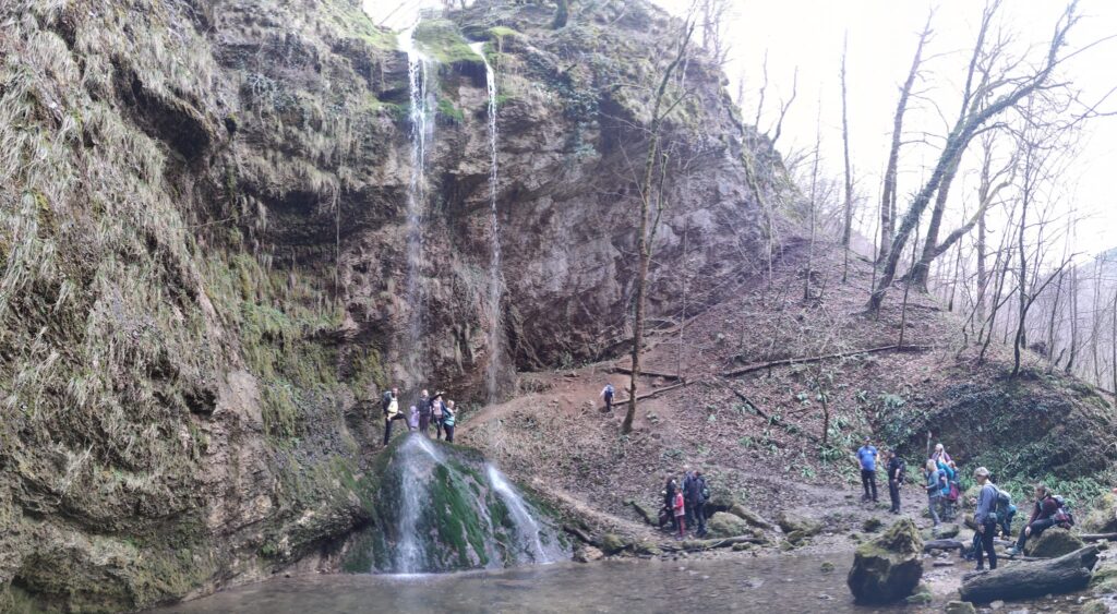 A onda smo krenuli put smaragdne doline. Doline Slapnice. Startna pozicija…Medven Draga. Puno je toga već rečeno za ovu dolinu na brojnim portalima i nema se smisla ponavljati. Čarolija je to vode, neprestanog zvuka žuborenja iste, uzrokovanog bezbrojnim kaskadama i slapovima, cvrkuta ptica koje neumorno prate svaki vaš korak, te čistoće i bistrine potoka Slapnice i njegovih pritoka, u jednom predivnom pejzažu svih mogućih nijansi one opuštajuće, smaragdno-zelene boje. Svi smo se složili – odmor za dušu i tijelo. A vrhunac svega naravno, slapovi su Vranjak i Brisalo. I ne samo ona uobičajena ushićenost koju čovjek doživi promatrajući i slušajući takve, više metarske slapove, već i njihova lokacija u samoj prirodi, te izgled, struktura i boje stijena preko kojih se ta dva slapa u milijun kapljica razbijaju pri svom padu i nastavku puta ka dolini. Na kraju ove staze je i simpatičan, navodno i jedini funkcionalni, “Draganov mlin”. Podsjetnik na neka stara, romantičnija vremena. I onda, da bi malo “začinili” to, možda monotono hodanje ravnicom doline, krenuli smo put novo markirane planinarske staze od “Draganovog mlina” do sela Drašći Vrh. E tu smo malo bacili pokoju kapljicu znoja jer nakon više od desetak kilometara hodanja, ova staza ipak je predstavljala “šok” za naša već izgladnjela i izmućena tijela. Uistinu, dosta je strma (što nismo znali), no opet, pokazali smo i dokazali svi zajedno, da smo sazdani od čvrstog materijala i da u svakom trenutku možemo jadno drugom pružiti ruku i biti pri pomoći. A najjače karike u ovom “lancu” bile su naše najmlađe članice. Naše malene princeze! I onda, opet onaj duhovni trenutak na kraju i već prvi pogled na našeg vozača, “blaženog” Anđelka i naš Čazmatransov autobus u selu, obrisao je sav nakupljeni umor.